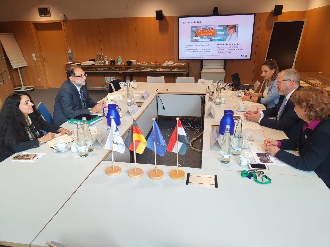 وفي إطار التعاون العلمي، عقد الدكتور الهوبي اجتماعًا مع الدكتور تيفس ترالاوس نائب الرئيس المعهد الفيدرالي لتقييم المخاطر (BfR، تناول خلاله الجانبان التجربة الألمانية في مجال تقييم المخاطر الكيميائية والبيولوجية للغذاء، وإمكانيات التعاون في البحث العلمي وتبادل الخبرات في تقييم المخاطر ودعم اتخاذ القرار القائم على الأدلة العلمية.
