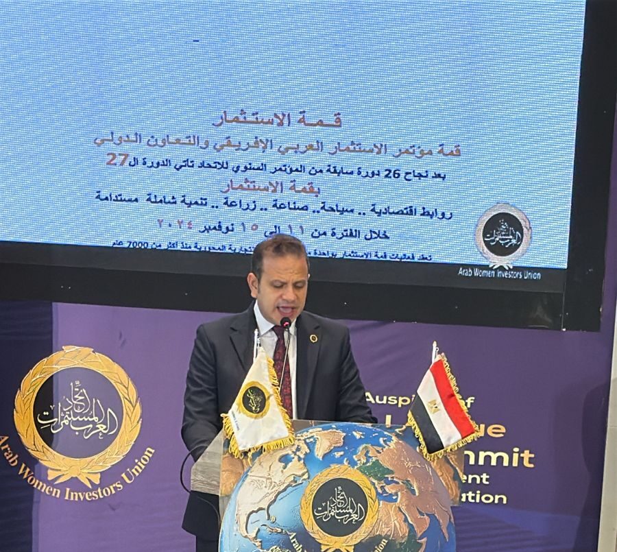 جاء ذلك فى   كلمته خلال   قمة  “ الاستثمار العربي الإفريقي والتعاون الدولي”  المنعقدة تحت شعار ” تكامل اقتصادي ..استثمار وفرص .. شراكات  دولية ”    فى دورته ال 28  وينظمها اتحاد  المستثمرات العرب برئاسة د.هدى يسي ، خلال الفترة من 19 إلى  22 أكتوبر 2025  برعاية جامعة الدول العربية   و كوكبة من الوزارات  ،  والهيئات الاقتصادية والاتحادات المصرية والعربية  ، وبحضور شخصيات رفيعة المستوى وممثلى 35 دولة .