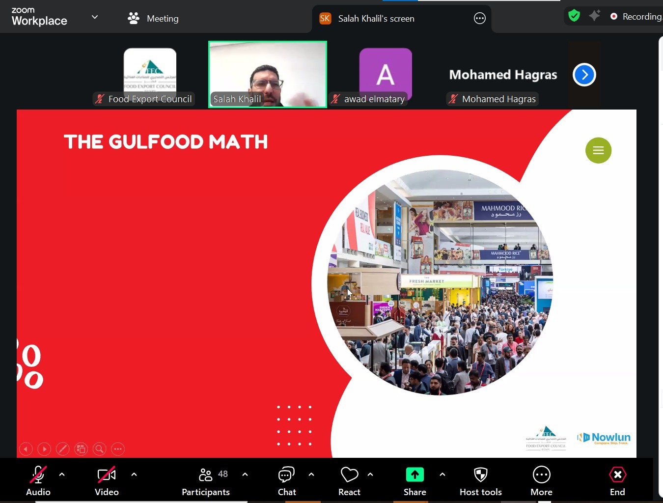 نظم المجلس التصديري للصناعات الغذائية ندوة افتراضية عبر تطبيق «زووم» بعنوان: «آليات التسعير الفوري للشحن ودورها في دعم الصفقات الدولية خلال معرض جلفود 2026»، وذلك يوم الأربعاء 14 يناير 2026، بالتعاون مع شركة «نولون»، إحدى الشركات المقدمة للخدمات اللوجستية للمجلس، في إطار استعداداته لدعم الشركات المصرية خلال مشاركتها بالمعارض الدولية، وعلى رأسها «جلفود 2026».