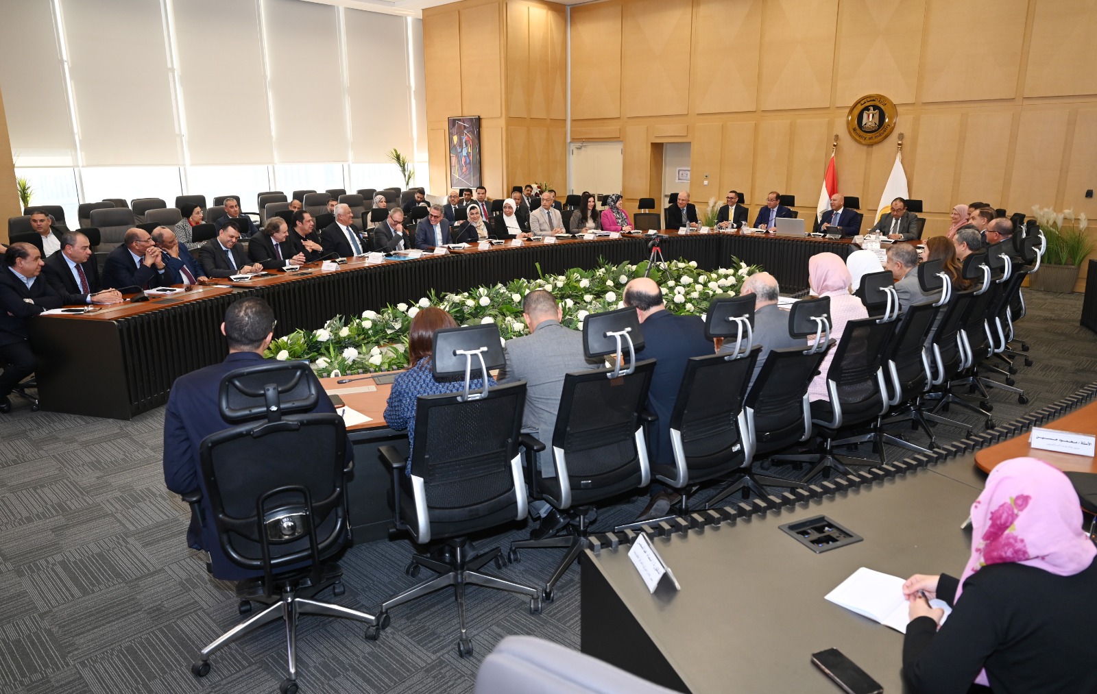 عقد الفريق مهندس كامل الوزير، نائب رئيس مجلس الوزراء للتنمية الصناعية وزير الصناعة والنقل اجتماعًا مع المهندس محمد شيمي وزير قطاع الأعمال العام والمهندس حسن الخطيب وزير الاستثمار والتجارة الخارجية وأحمد كجوك، وزير المالية والمهندس محمد السويدي، رئيس اتحاد الصناعات المصرية وممثلي غرفة صناعة الغزل والنسيج وغرفة صناعة الملابس الجاهزة والمجالس التصديرية للغزل والنسيج والملابس الجاهزة لبحث سبل تعميق التصنيع المحلي وتقليل فاتورة الواردات، وذلك بحضور الدكتورة ناهد يوسف رئيس الهيئة العامة للتنمية الصناعية وعدد من قيادات وزارات الصناعة وقطاع الأعمال العام، والاستثمار والتجارة الخارجية، والمالية.