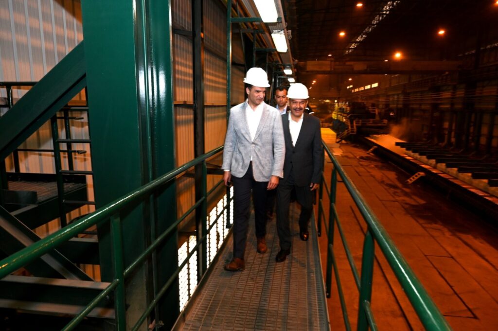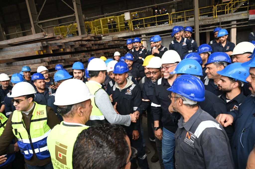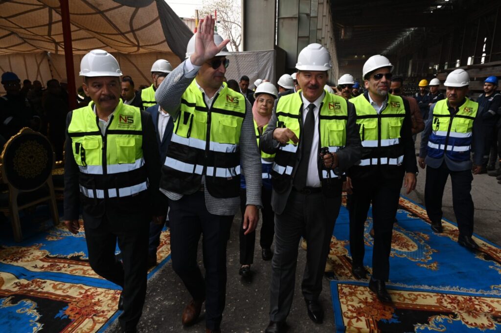 ثم تفقد الوزير مصنع حديد عز بالعين السخنة التابع لمجموعة حديد عز والمقام على مساحة 3 مليون متر مربع برأس مال يبلغ 6.5 مليار جنيه وتبلغ الطاقة الإنتاجية للمصنع 2.2 مليون طن سنويًا، وتوفر المجموعة أكثر من 10 آلاف فرصة عمل مباشرة وأكثر من 10 أضعاف هذا العدد فرص عمل غير مباشرة، وقد بلغت صادرات المجموعة مليار دولار عام 2025 من منتجات (ألواح الصلب المسطح ـ حديد تسليح)، وقد كان في استقبال الوزير السيدة/ عفاف أحمد عز رئيس قطاع تطوير الاعمال بالمجموعة والأستاذ/ علاء أبو الخير نائب رئيس مجموعة عز الصناعية، وخلال الزيارة تفقد الوزير مصنع الاختزال، ومنطقة الأفران والماكينات، ومراحل درفلة الصلب المسطح وصولاً للمنتج النهائي.